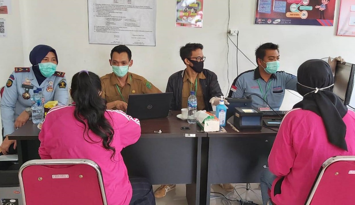 Petugas dari Disdukcapil Kukar merekam data E-KTP penghuni Lapas Klas IIA di Tenggarong.
